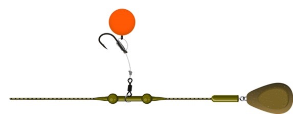 Een zeer visveilig systeem. Op de leader (voorslag) zitten één of twee rubber kralen op een taps aflopend rubbertje geschoven. Daartussen zit de onderlijn, die via een wartel met een groot oog is bevestigd. Bij lijnbreuk glijden de kraal en de wartel met gemak over elke knoop heen en hoeft de vis alleen het onderlijntje kwijt te raken.