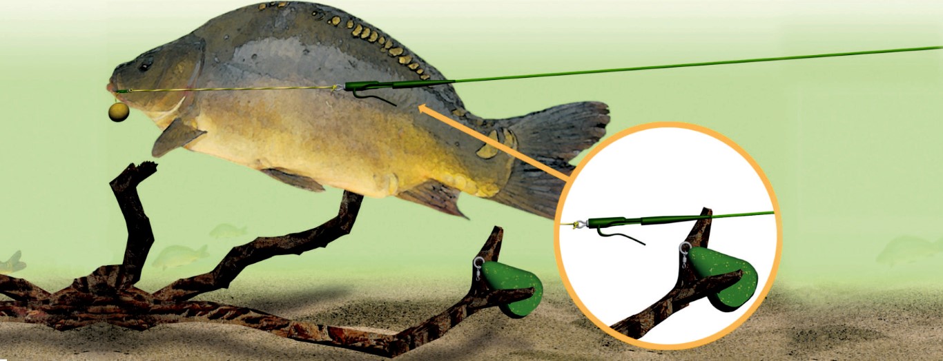 De basis van deze methode is dat je een wat zwaarder werpgewicht gebruikt, met daaraan vast de onderlijn met haak. Het aas zit niet aan de haak maar wordt aan een ‘hair’ aangeboden. Bij het oppakken van het aas zal de karper zichzelf prikken en er vandoor schieten. Het resultaat: een harde aanbeet en een kromme hengel!
