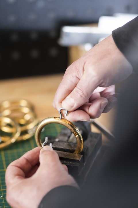 - Open de ring, zet hem over de lijn en klik hem weer dicht.