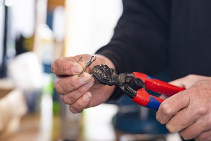 Hang de dreggen in de schroefogen en knijp die vervolgens dicht met behulp van een sterke knijptang, zodat je de dreggen borgt. Controleer goed of de dreggen ook écht niet los kunnen raken.