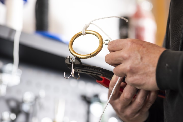 De ‘sleutel’ tot een effectieve kunstaasredder is een roestvrijstalen (RVS) sleutelring van voldoende kwaliteit. Koop je exemplaar in een bouwmarkt of online bij een erkende leverancier en kies voor een fors exemplaar met een diameter van minimaal tien centimeter. Dit maakt dat de ring snel afzinkt en eenvoudig over je onderlijn én het kunstaas valt. Dat laatste is belangrijk omdat de ‘redder’ anders niet goed in het vuil kan grijpen waaraan het kunstaas vastzit.