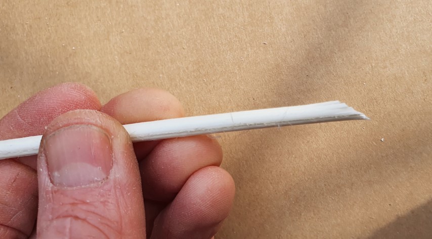 Extra tip: Als de dobber een beetje krom is, kun je hem recht maken door hem heel even boven de stoom van een waterkoker te houden en recht te buigen. Pas goed op dat je je vingers niet brandt aan de hete stoom en dat je de pen niet té warm maakt, want dan wordt hij slap.