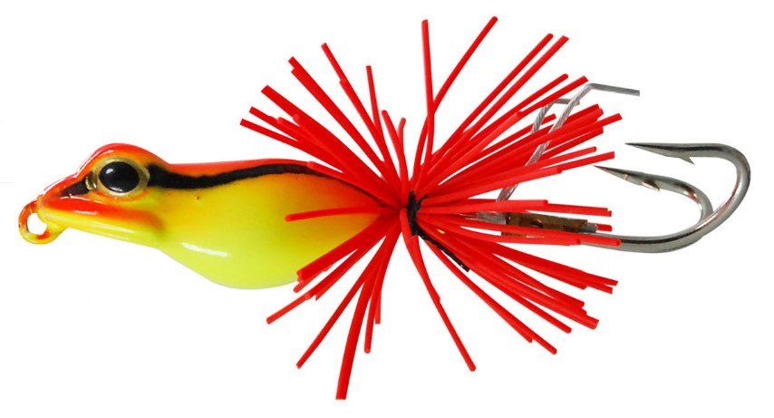 In plaats van achterpootjes hebben de kikker-imitaties meestal een bos met kleurrijke slierten. Dat ziet er misschien wat vreemd uit, maar heeft als voordeel dat het kunstaas in de lucht minder weerstand heeft. Zo kun je de kikker toch redelijk ver werpen, ondanks het geringe werpgewicht. De haakpunten worden vaak afgeschermd door twee sprietjes van metaaldraad of lusjes van dik nylon. Zo haak je bijna geen planten. Bij een aanbeet buigen de sprietjes plat, waardoor de vis goed wordt gehaakt. Er zijn ook modellen waarbij de haakpunten worden afgeschermd door het zachte rubberen lichaam van de kikker.