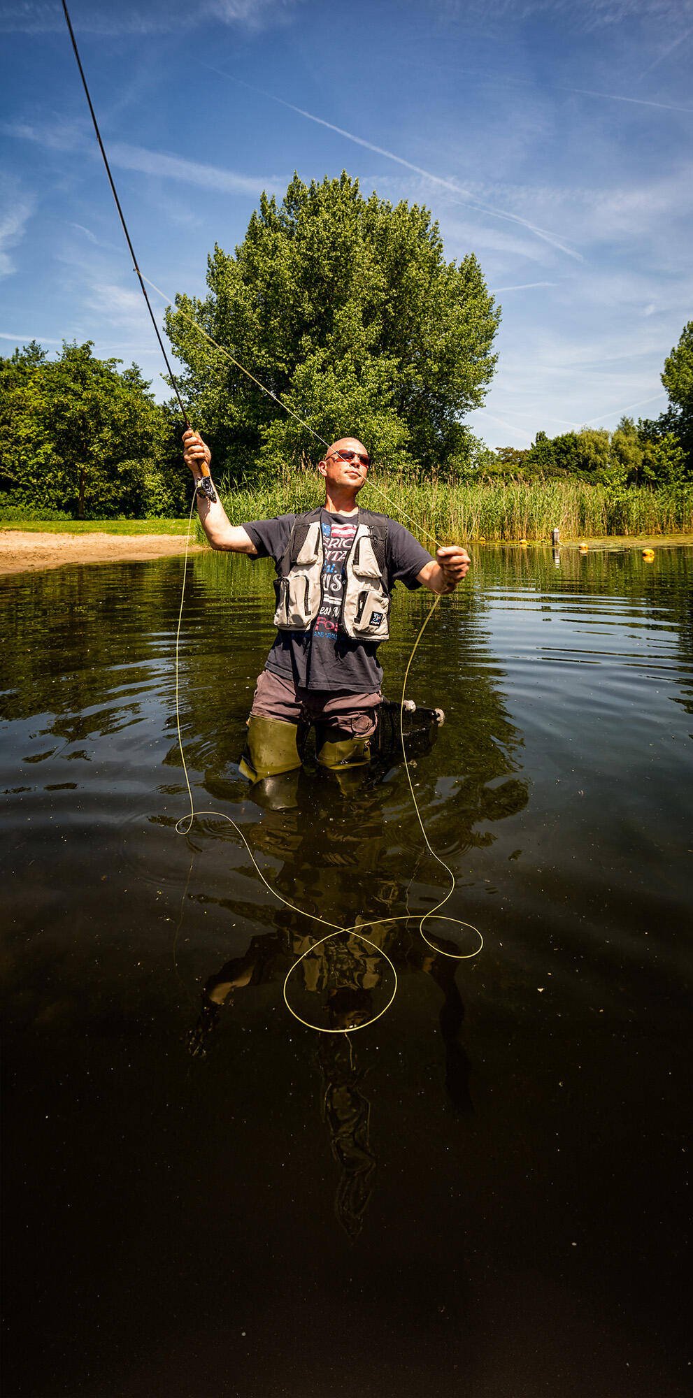 - Vis langs rietkragen, waterlelies en boven waterplanten.