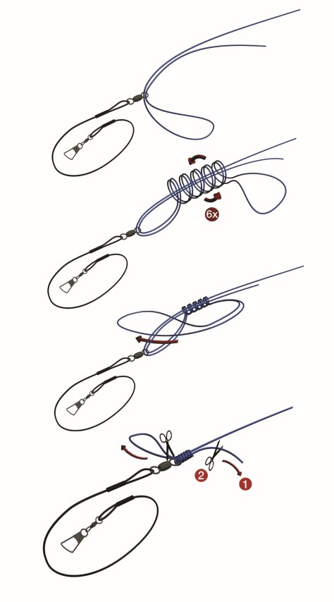 Een goede knoop is het halve werk. Op deze pagina’s leer je hoe je een stalen onderlijn aan een nylon hoofdlijn bevestigt met de halve bloedknoop. Voor gevlochten lijn gebruik je de aangepaste halve bloedknoop. Deze knoop voorkomt dat de vaak wat gladdere gevlochten lijn gaat slippen.