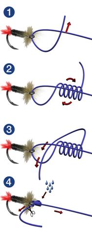 - Haal het uiteinde van de lijn door de lus boven het haakoog.