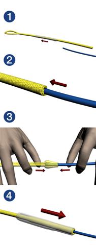 - Schuif eerst het plastic hulsje op de leaderloop richting de lus.