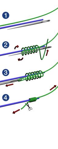 - Wikkel het uiteinde van de lijn vijf keer om de hoofdlijn.