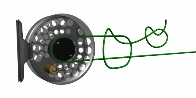 Deze knoop gebruik je om je backing aan de reel te bevestigen.