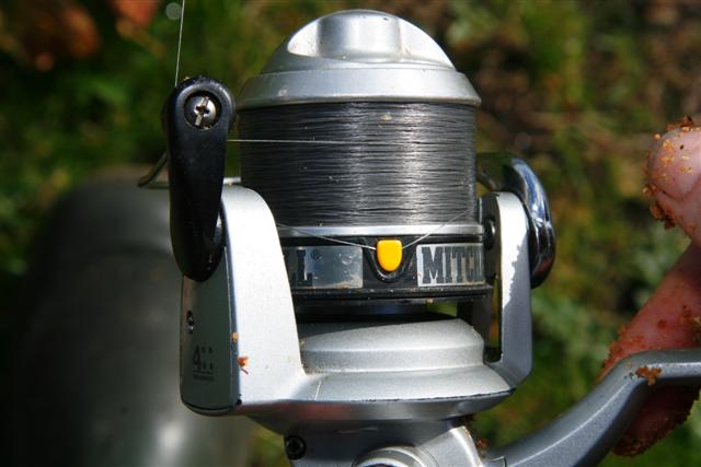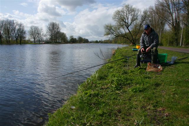 De hengel ligt op een brede hengelsteun bij na evenwijdig aan de oever, iets wijzend richting het aas. Je kunt de aanbeten zo perfect zien en hebt alle ruimte achter je om goed aan te slaan.