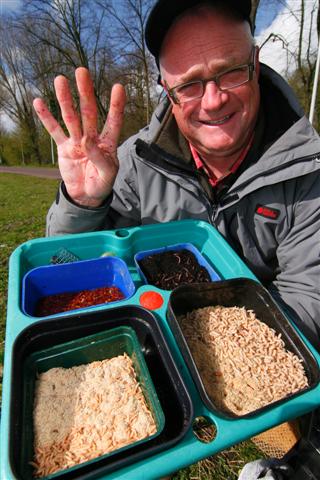 Als het even kan neem je verschillende aassoorten mee. Ed zweert bij deze vier toppers: grote maden, kleine maden, casters (verpopte maden) en mestpiertjes.